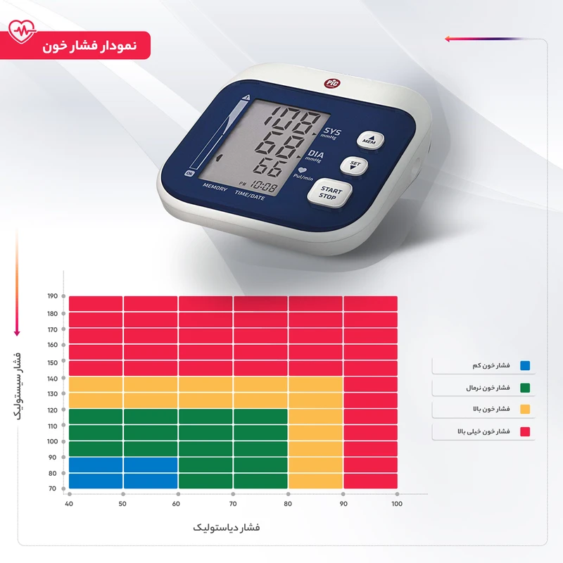 | قابلیتهای فشارسنج | اندازهگیری ضربان قلب اندازهگیری فشار خون نمایش میانگین نتایج نمایش تاریخ حافظه ذخیره نتایج |